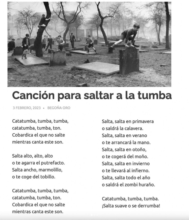 Me llega la última foto de la ¿última temporada? de UNA Y CIEN: Una imagen / Cien palabras. No es esta. Esta del cementerio es la penúltima y lo que hay debajo, son las cien palabras, ni una más, ni una menos, que escribí sobre ella. Nuestro jefe, Óscar Mora, que es quien escoge las fotos y pone un poco de orden en esta propuesta loca de escritura, nos ha dicho que esa colección, la del mes pasado, ha quedado maravillosa. A mí también me lo pareció. Pueden ver si están de acuerdo visitando www.unaimagencienpalabras.es [página tristemente fallecida] y leyendo el resto de relatos, escritos por gente tan estupenda como talentosa a la que merece la pena leer. Agradezco en el alma este espacio de juego, este patio de recreo que nos ofrece Óscar donde jugamos, escribimos y compartimos croquetas. Ha habido meses que me ha pillado con el agua al cuello, entre deadlines y achaquitos, pero he intentado no faltar a la cita porque a veces da gusto escribir solo para eso, por el puro placer del juego, como niños que saltan en un camposanto, ajenos al peso del mundo. Una de las unocientistas, Rocío Márquez (@gotasyrocio), ha llevado el juego de unaycien al instituto. No solo alabo su apostolado sino que me sumo a él y les animo a hacer lo mismo. ¡Prueben! ¡A escribir (y contar palabras)! Ojalá lo pasen tan bien como yo.