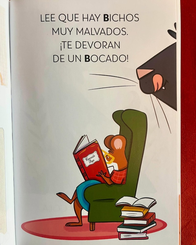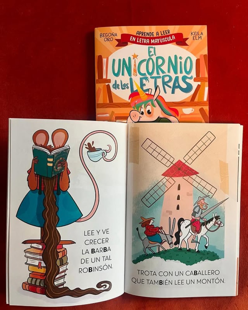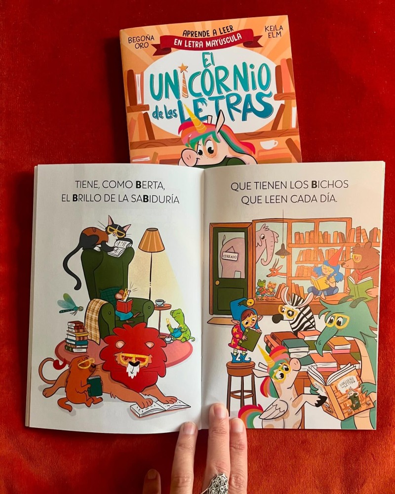 Su genial ilustradora, @keilaelm, ha hecho aparecer en un cameo espectacular a toooodos los protagonistas de las historias del dragón de las letras y del unicornio de las letras. (¡Ya van ocho historias para aprender a leer en mayúscula!).